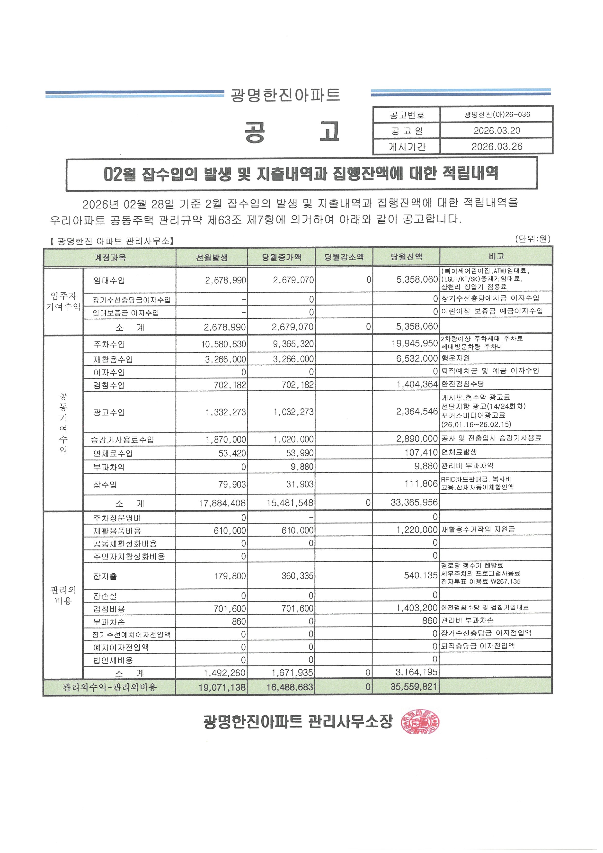 2¿ù Àâ¼öÀÔ ¹× ÀâÁöÃâ ÁýÇà³»¿ª ¹× Àû¸³³»¿ª °ø°í
